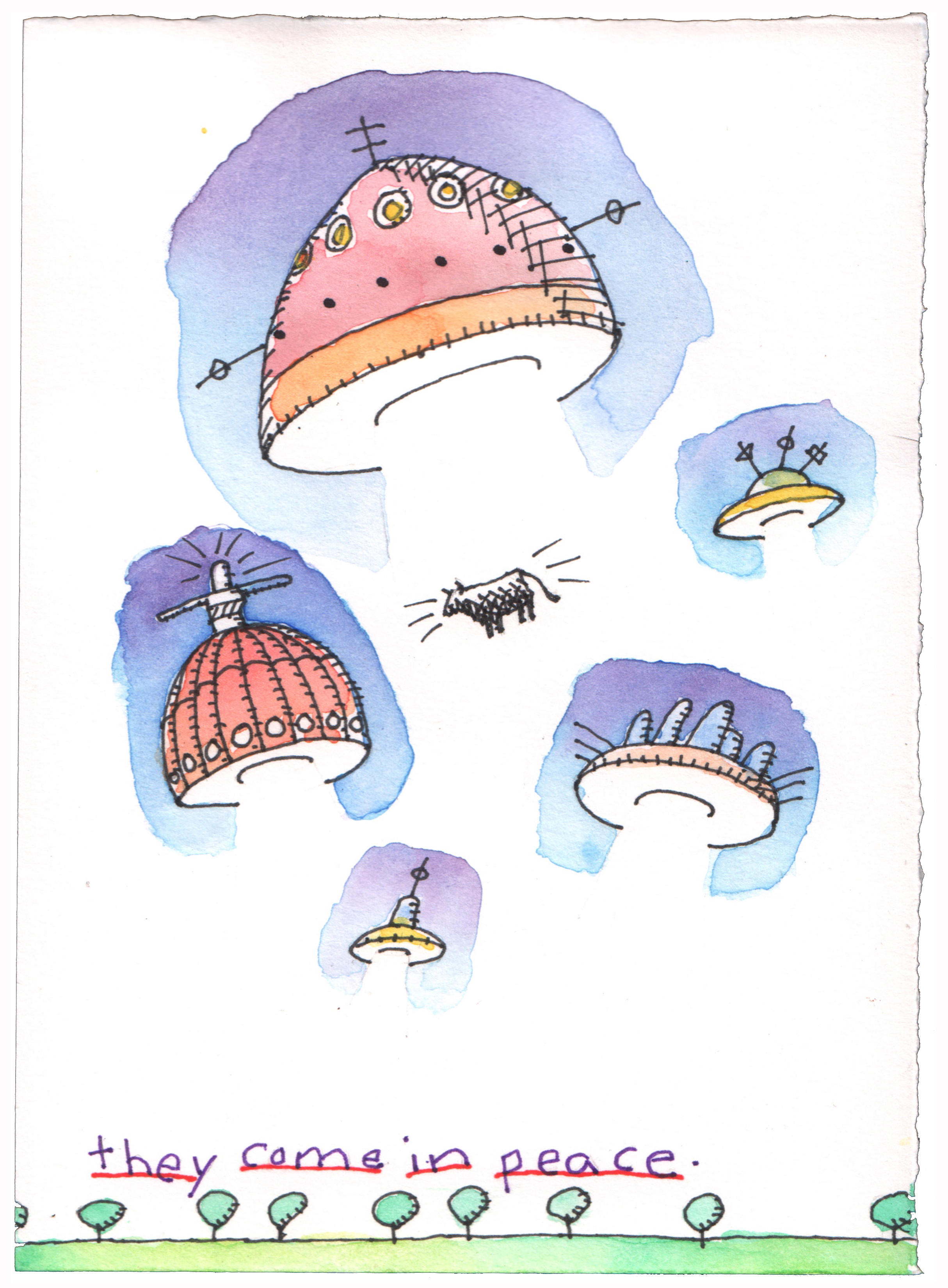 5 by 7 inches ink and watercolor on paper